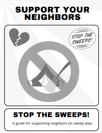 Anti-Sweep & Community Resources Checking on Community Zine - PDF Guide for Supporting Neighbors at Sweeps - PDF Sweeps Kill All Star Game Stats - PDF Stop the Sweeps Zine - JPEG Home on the Road: Info for Living in Vehicles - PDF Homelessness & Employment - PDF We Heart Seattle Warning - JPEG We Heart Seattle Warning - JPEG Heat & Smoke Survival Resources Stay Cool Zine for Surviving Heat - PDF Summer Tips for Living Outside - PDF Surviving Extreme Heat Trifold - PDF Cold & Winter Survival Resources Winter Tips for Outside Living - PDF Autonomous Winter Support Mobilization - PDF DIY Heaters Step by Step Instructions Illustrated Zine - PDF Heater Bloc’s Guide to Building a Tent-Safe Copper Heater v1 - PDF Guide to Building Copper Coil Alcohol Heaters v2 - PDF DIY Emergency Disposable Body-Heat Reflective Sleeping Mats - PDF Guide to Surviving Winter Weather - PDF Jail Support & Police Abolition Resources Abbreviated DIY Jail Support Zine - Phone/Reading Version - PDF Arrest Will Fillable Form - PDF How to Remain Calm While in Jail Zine - PDF Comprehensive Document for DIY Jail Support, Arrest Wills, and Protest Safety Resource - PDF Abbreviated DIY Jail Support Zine - Print Version - PDF If An Agent Knocks - PDF Tips for Community Reporting on Police and ICE Activity - PDF Immigrant Resources Know Your Rights with ICE - English - PDF Sus Derechos Con La Migra - Española - PDF Seus direitos com o ICE - Portuguese - PDF Biloko Na Yo Na Ndakisa - Lingala - PDF Xuquuqda Aad Kuledhahay ICE - Somali - PDF Vos Droits A L’egard de L’ICE - French - PDF